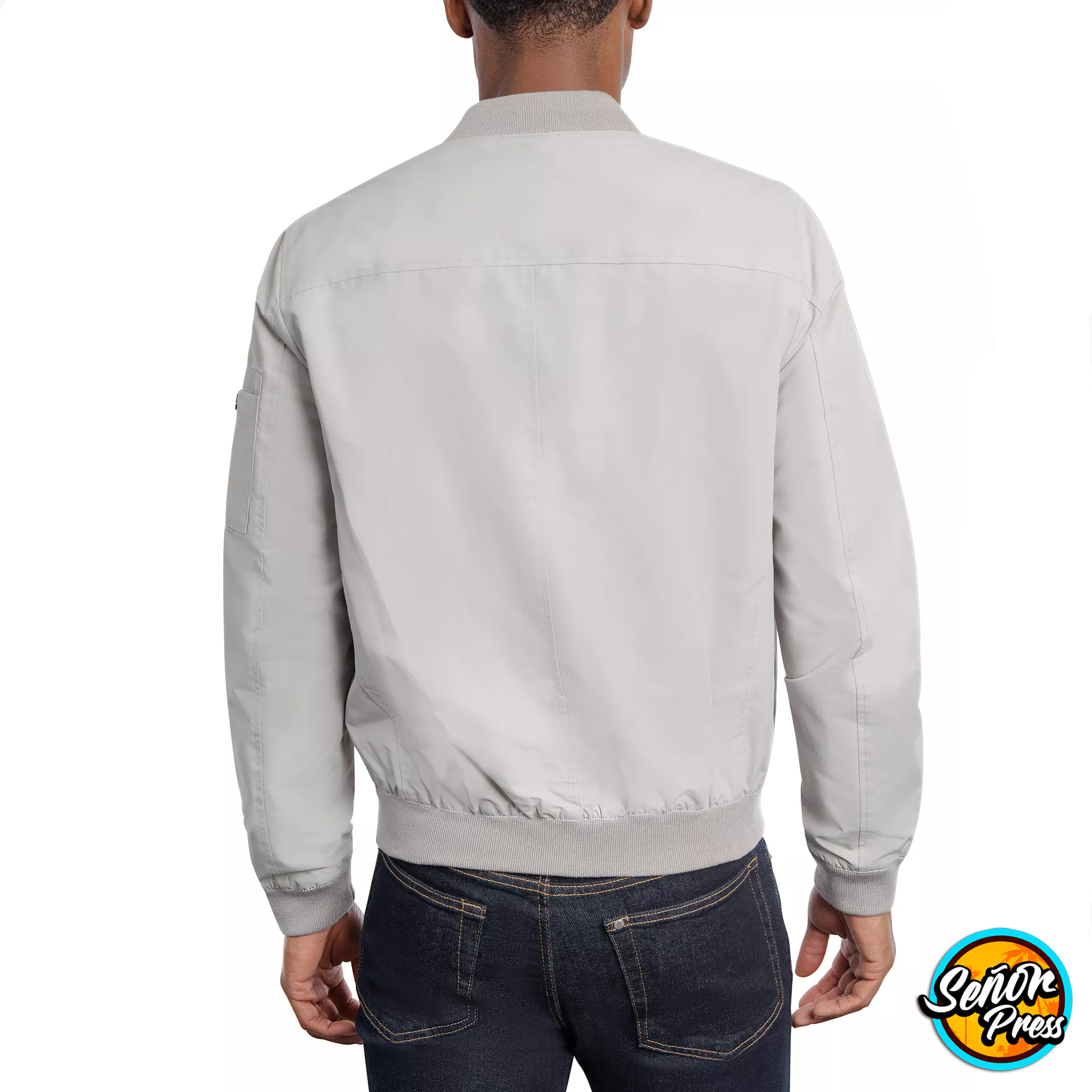 Finished with knit cuffs and waistband, this water-resistant bomber jacket features an aviator sleeve pocket with the Michael Kors logo bade and two lower angled welt pockets with snap closures.