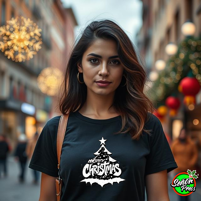 Merry Christmas in a Graffiti style lettering with a Christmas Xmas tree and snow splatters. Rock this cool original Christmas tee with style.